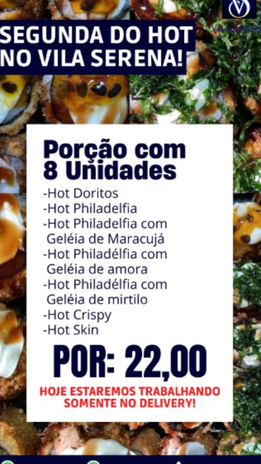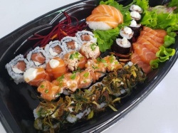 Combinado com 18 Sashimi, 16 Joe Salmão, 8 Joe Pepino, 9 Niguiri, 16 Hossomaki, 12 Uramaki, 8 Uramaki California, 20 Hot Philadelfia