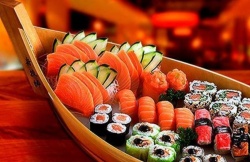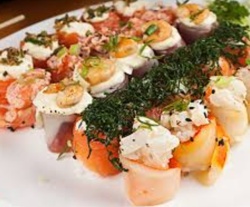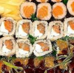 Combinado com 4 Joe salmão, 5 Niguiri, 16 Hot Philadelfia, 15 Hossomaki e 15 UramakiCombo Imperador 55 peças