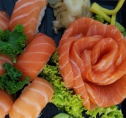 Combinado com 7 Sashimi, 8 Joe Salmão, 6 Niguiri, 8 Hossomaki, 8 Uramaki, 8 Hot PhiladelfiCombo Nippon 55 peças